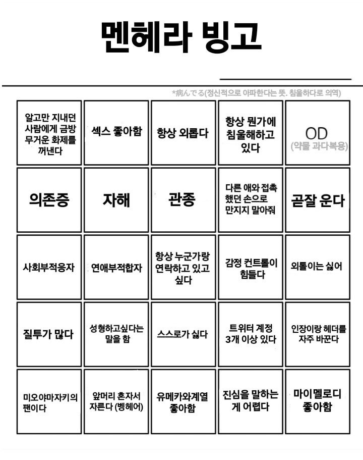 하지만 맨헤라는 의학 용어가 아닙니다. 실제 정신 건강 문제를 가진 사람들에게 내키는대로 쓰면 오해를 살 수 있기 때문에 유의해야 하더라고요. 맨헤라 뜻은 특정 서브컬처와도 연결되며 특별히젊은 층에서 특출난 매력으로 흡수해지고 있다고 하는데요.