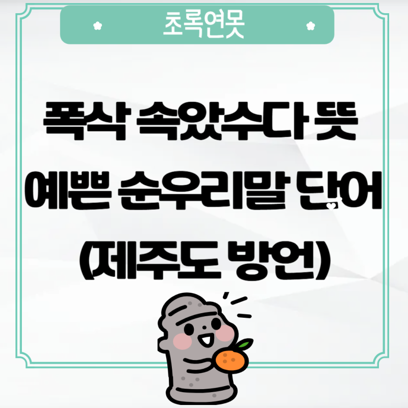 안녕하세요, 제주도 여행 계획 있으신가요? 아니면 혹시 요즘 인기 있는 드라마 폭싹 속았수다를 보셨나요? 제주 방언은 표준어와 많이 달라서 처음 들으면 무슨 말인지 헷갈리기도 해요. 특히 '폭싹 속았수다'라는 표현은 많은 분들이 궁금해하시더라고요. 저도 처음엔 '아, 완전히 속았다는 뜻인가?' 하고 생각했답니다. 😊