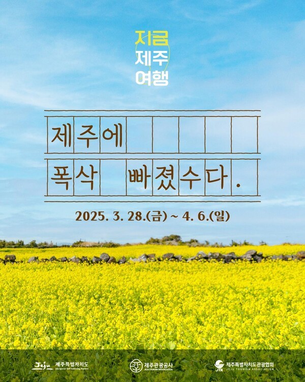 '폭싹 속았수다'라는 문구가 적힌 손글씨와 따뜻한 느낌의 제주 풍경