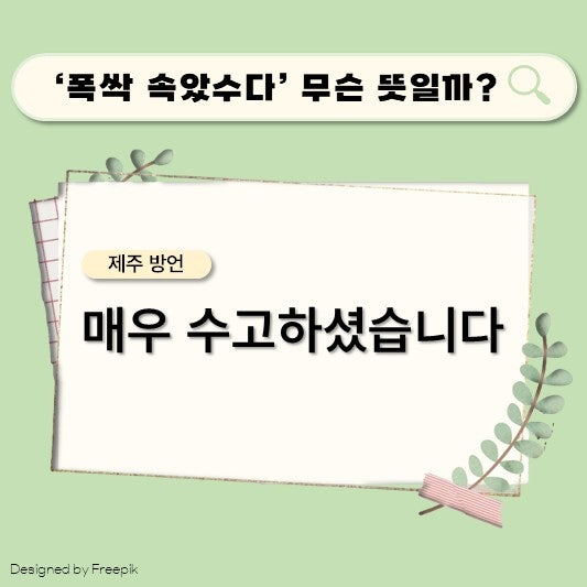 - '폭싹 속았수다'의 뜻을 알고 있나요? 제주 방언을 알려드립니다 #shorts