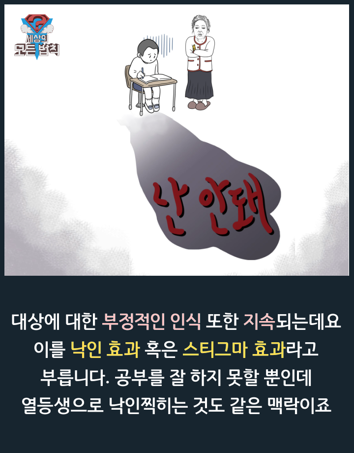 - 스티그마 효과: 부정적인 기대가 부정적인 결과를 낳는 현상.