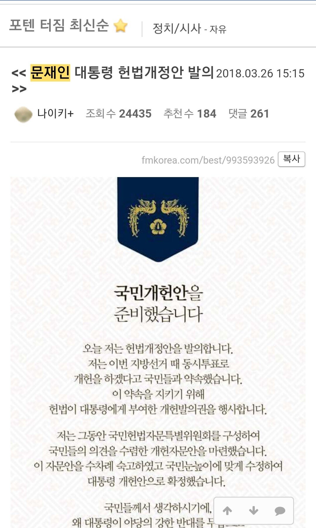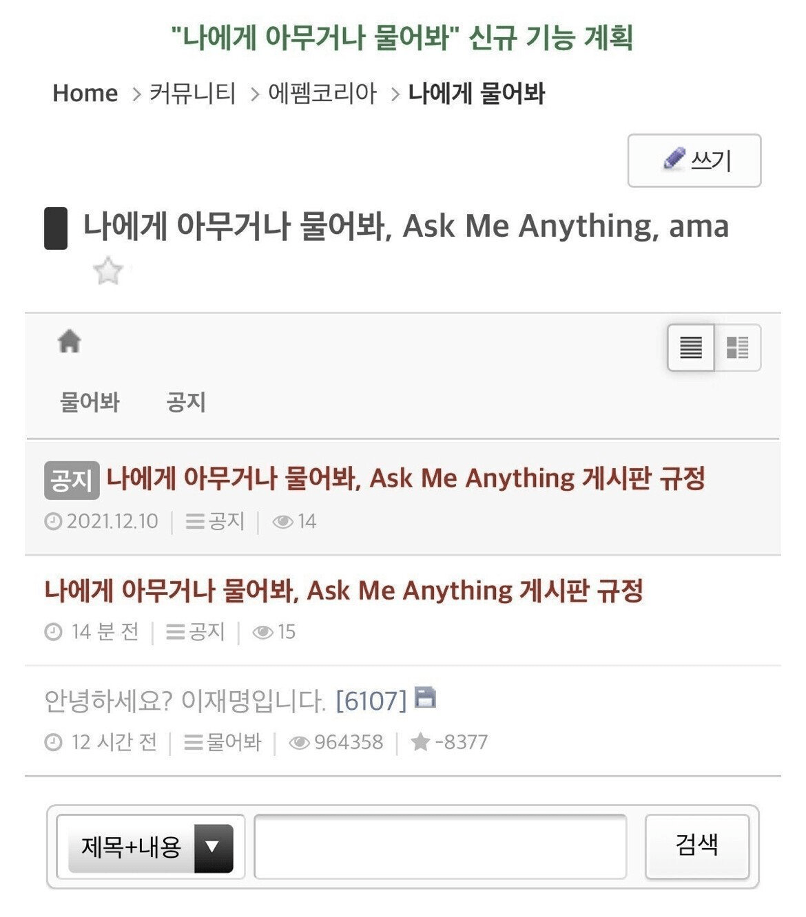 펨코는 이제 단조명확한 게임 커뮤니티를 넘어 유머, 정치, 스포츠 등 각종 주제를 취급하는 일통 플랫폼으로 자리 잡았습니다. 펨코에서 인기가 높은 게시글은 ‘포텐 터짐’이라고 호출하는 게시판으로 높게되는데, 이건 사용자들의 추천(‘포텐 올리기’)을 많이 받은 글을 뜻해요.