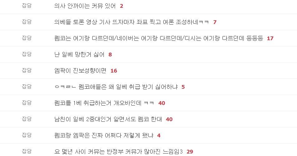 하지만 일베는 5.18 민주화운동 비하 등의 논란이 있었고, 일부 사용자가 펨코로 이동하면서 “펨코가 일베화되고 있다”는 말도 나오고 있다고 합니다.